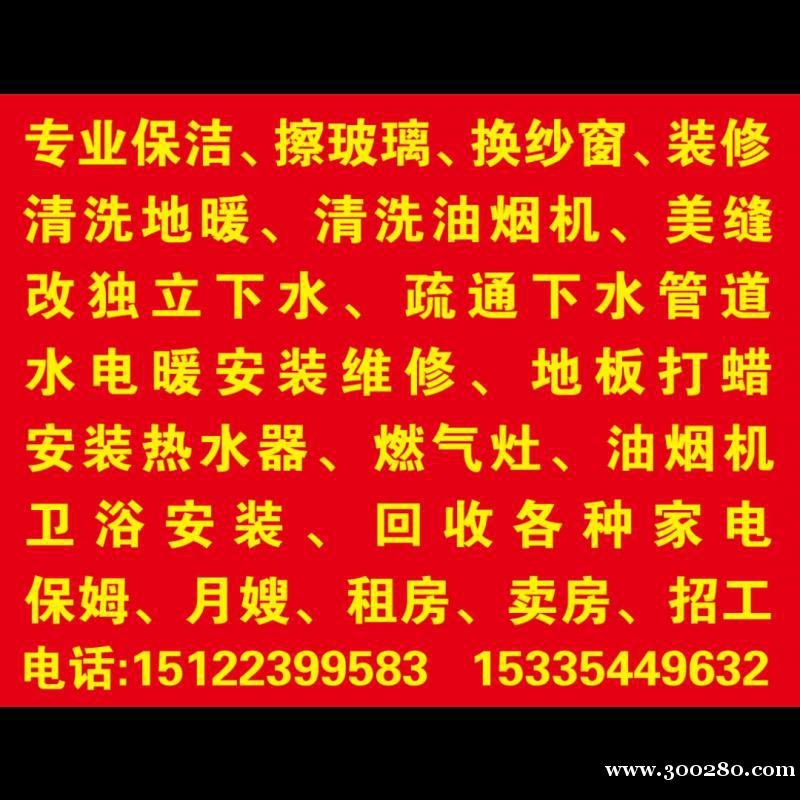 保洁擦玻璃清洗油烟机清洗地暖洗衣机疏通下水道